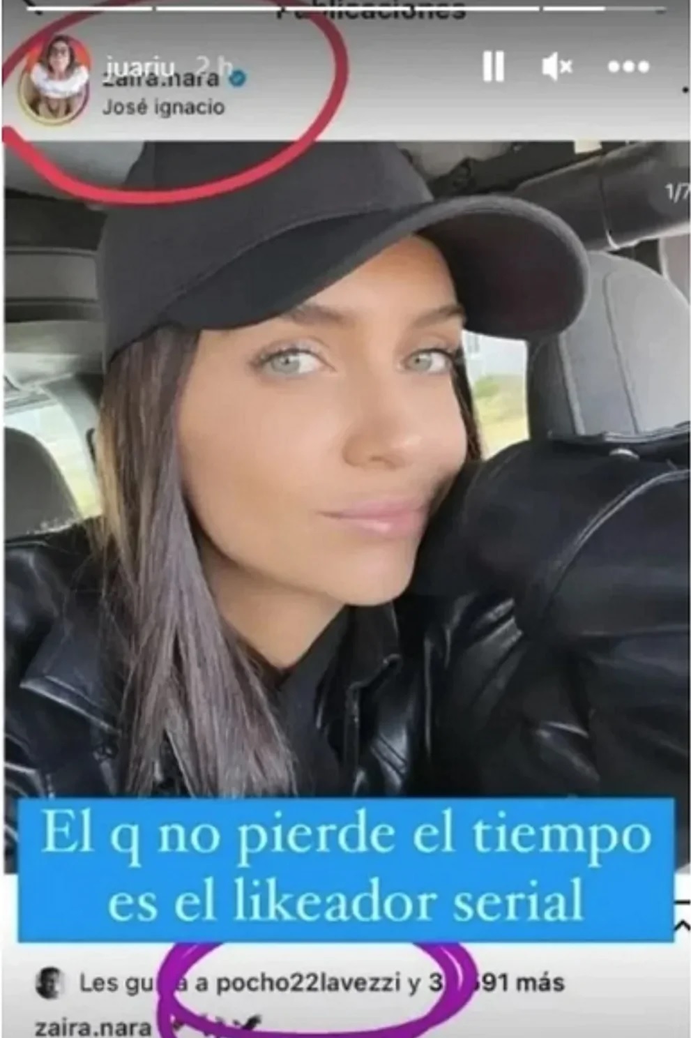 “Quién no pierde el tiempo es el likeador serial…”, agregó Juariu, muy picante, en referencia a Pocho, a una captura de pantalla de la publicación de Zaira donde se ve en primer lugar, la validación virtual del deportista.