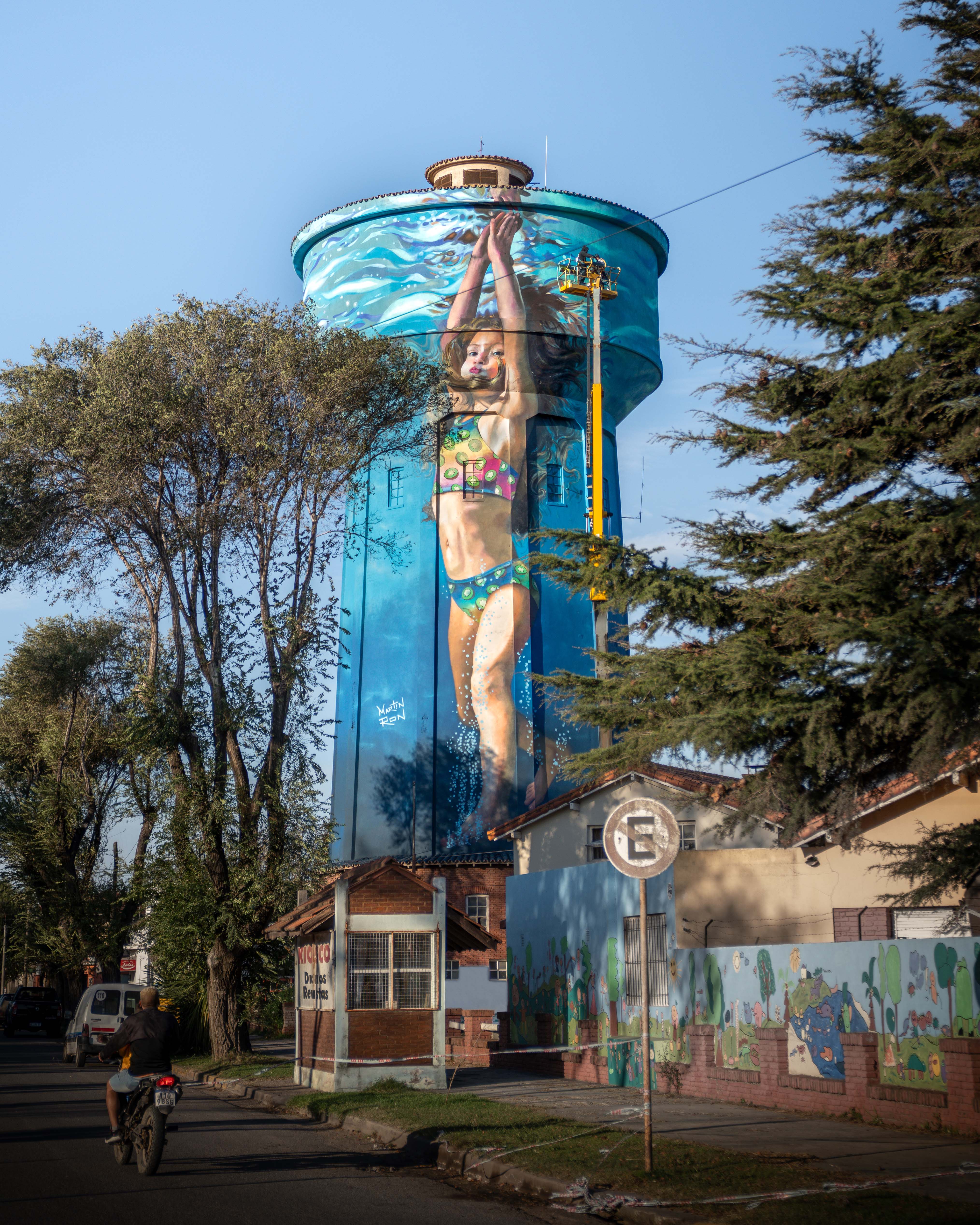 La obra que el artista Martín Ron realizó en la Torre de Agua de la ciudad costera de Miramar, de 35 metros de altura, con la imagen de dos niños felices a punto de darse un chapuzón, fue elegido como el "Mejor mural del mundo" en el mes de junio por la prestigiosa plataforma Street Art Cities.