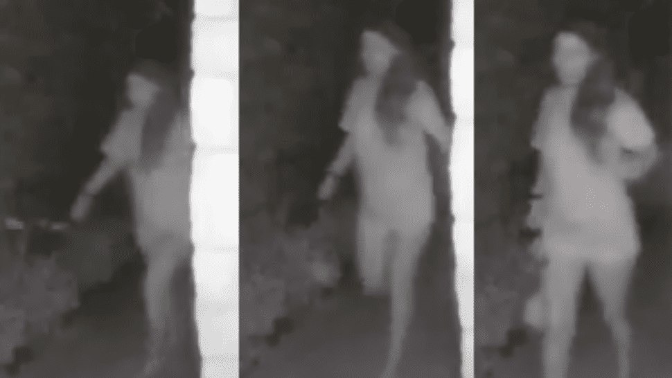 La cámara de seguridad de un domicilio en Montgomery, Texas ( Estados Unidos), grabó a una mujer semidesnuda y con esposas llegando a la entrada de la vivienda. Después de tocar el timbre, sin embargo, la mujer se fugó en la oscuridad de la medianoche.