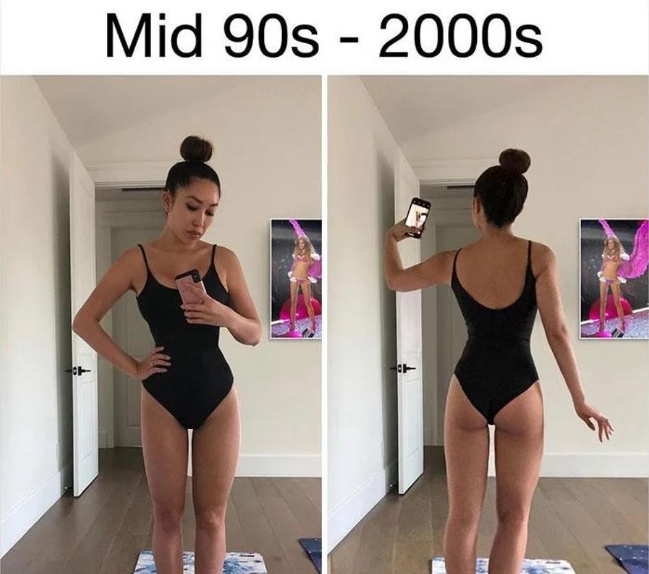 A mediados de los 90 y en la primera década de 2000, el cuerpo perfecto tenía que tener pechos grandes y piernas largas. Otro detalle son los estómagos bien chatos y el "thigh gap", el espacio entre los muslos flacos. Es la época de los ángeles de Victoria’s Secret.