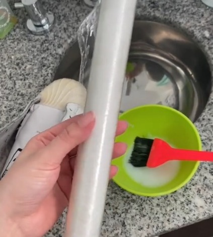 Lo primero que hay que tener en cuenta es que se necesitará detergente, revelador de 30% que se usa para la tintura del pelo y papel film.