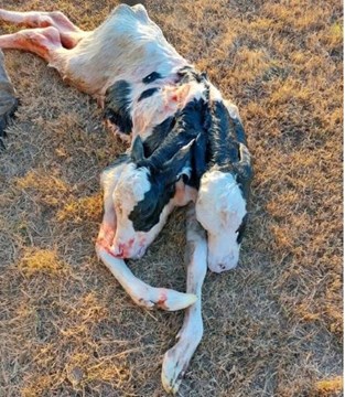 El animal con esa malformación sorprendió a los empleados del tambo, quienes, tras un difícil trabajo de parto, llegaron a tomarle fotografías al animal poco antes de que muera, informó el sitio Todo Lechería.