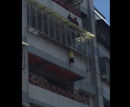 El incidente sucedió en la ciudad de Pingtung, en el sur de Taiwán. Una vez que salió al balcón del quinto piso, se cayó entre las rejas de seguridad, con pocos centímetros se separación entre unas y otras.