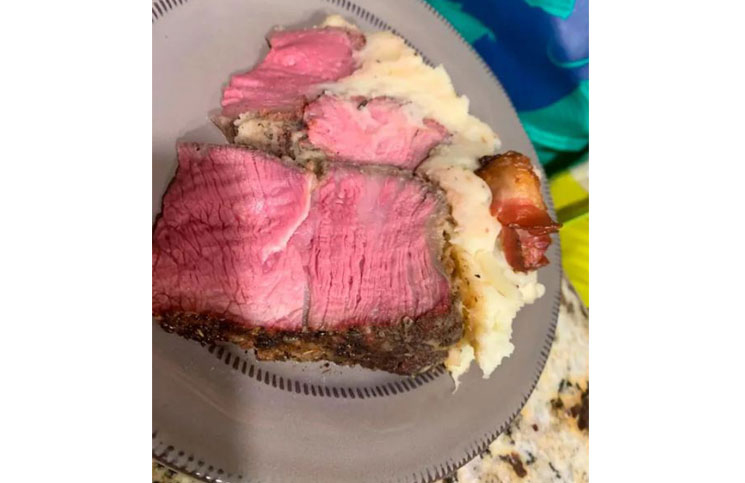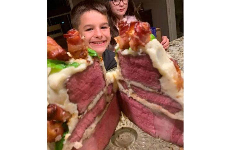 Junto al posteo él escribió: “Bueno … en su noveno cumpleaños, él [Zander] se ganó un pastel de carne. La primera capa es de costilla, la segunda es el lomo y terminó con filet mignon. Puré de papas cubierto con rosas ¡panceta! ¡Yum! ¡Programado y cocinado perfectamente poco hecho! ¡Amo a este chico! [Soy] Solo un padre soltero que descubrió la pasión por cocinar y ahumar carne “.