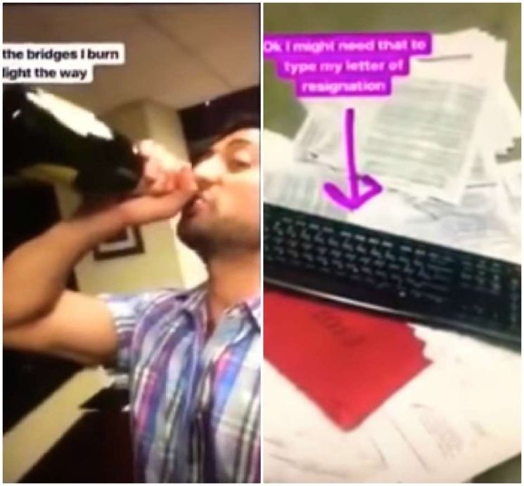 El hombre compartió a través de la red social  Instagram los momentos en que el hombre vació botellas de champagne en la alfombra, pateó muebles, tiró documentos y dejó una carta de renuncia con el mensaje: "Jódete, renuncio", según informó el sitio sdpnoticias.com.