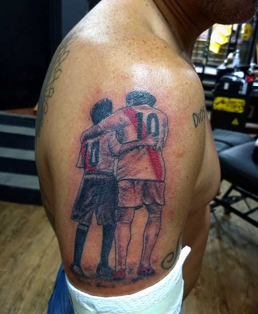 Recientemente, el Burrito dio una nueva muestra de ese sentimiento que lo une al club de Núñez: se tatuó en el brazo derecho una imagen del día de su partido homenaje, en la que está abrazado a su hijo Tomás.
