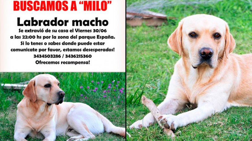 Nadía, una joven fotógrafa oriunda de Diamante, Entre Ríos busca desesperadamente a su perro labrador llamado Milo, que está desaparecido desde el 30 de junio.