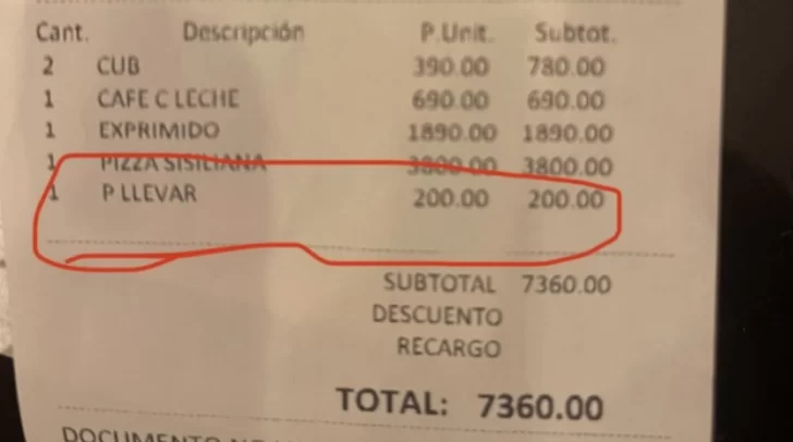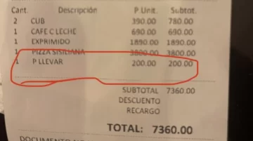 Un joven pidió llevarse a su casa los restos de la pizza que no llegó a comer en un restaurante de Comodoro Rivadavia y que habían sobrado, pero le cobraron 200 pesos de recargo y cuando pidió explicaciones, le respondieron que era porque "aumentaron las bandejas de plástico".