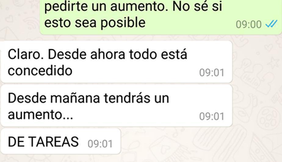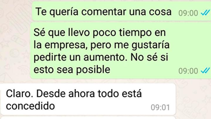 “Te quería comentar una cosa. Sé que llevo poco tiempo en la empresa, pero me gustaría pedirle un aumento. No sé si eso sea posible”, escribió el trabajador en el primer mensaje que envió por WhatsApp.