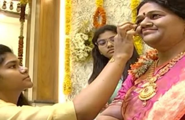 El viudo, llamado Srinivasa Gupta, de 57 años, encargó una estatua realista de su esposa muerta en un accidente automovilístico. Madhavi Gupta murió hace tres años y antes de su muerte, según los informes, había soñado con tener un bungalow.