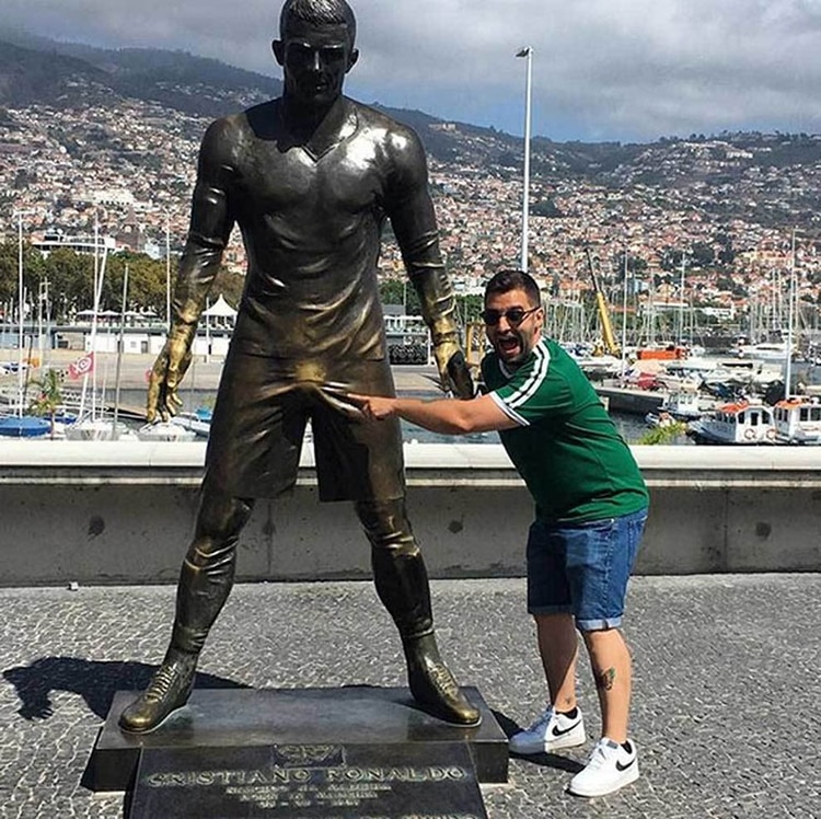 Así como sucede en la Universidad de Hardvard, en donde los estudiantes tocan el pie de la estatua de John Harvard para tener buena suerte en sus exámenes, o en el metro de Rusia en donde los pasajeros le tocan el hocico a un perro antes de abordar, tocar la entrepierna de Cristiano Ronaldo tal vez también traiga suerte.