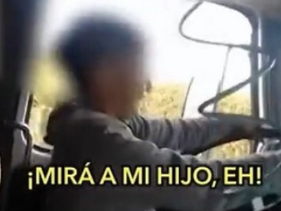 “Mirá a mi hijo. Ahh, estoy re contento, mi hijo está manejando. Mirá, maneja mi hijo, ¿Qué se piensan? Va a salir como el padre él, mejor va a salir…. Te amo vida, te amo”, expresó el hombre notablemente emocionado, pero sin tomar conciencia del imprudente acto.