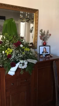 El altar que armó el padre de la joven tenía un adorno de flores, una cinta de una corona de las que se envían a los muertos, una foto de su hija y una pequeña vela.