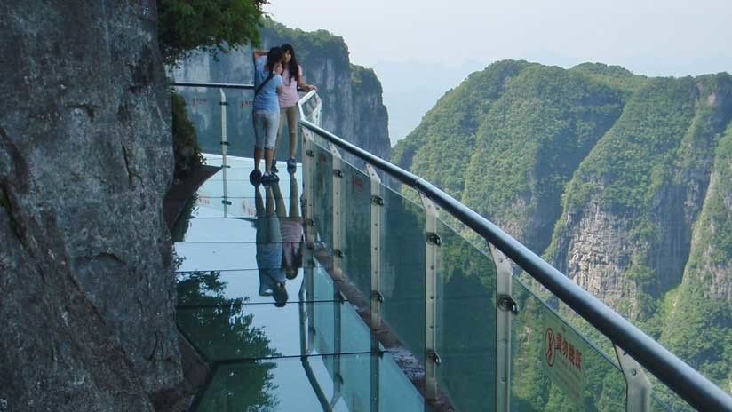 Recorre una pasarela de cristal a 1.200 metros de altura que comienza a quebrarse