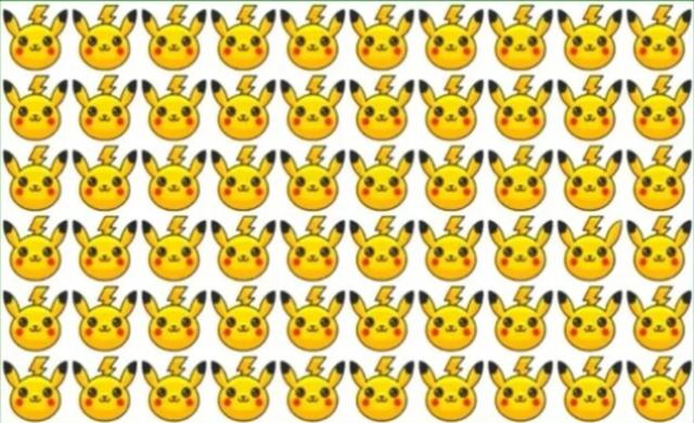 La prueba consiste en encontrar cuál es el pikachu que se diferencia del resto en la imagen. Y, como si esto ya no fuera suficientemente difícil, debe realizarse en menos de un minuto. Por este motivo, 9 de cada 10 personas que lo intentaron, fracasaron rotundamente.