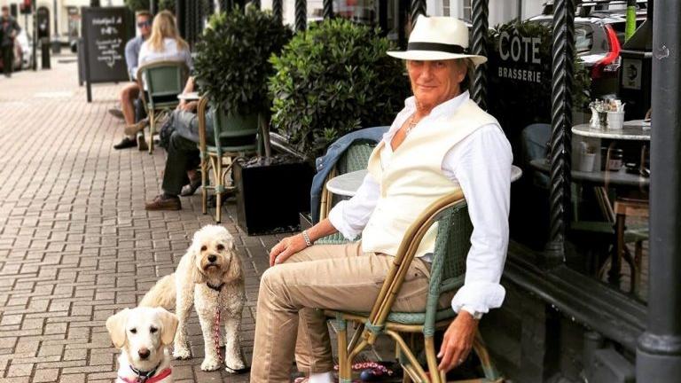 En el centro de la imagen está el cantante británico, vestido con un chaleco dorado a tono con los colores de sus slippers de leopardo, posa junto a Alana Stewart, su primera esposa con quien tuvo dos hijos Kimberly y Sean; Kelly Emberg, madre de su hija Ruby; Rachel Hunter, con quién se casó por segunda vez y tuvo otros dos hijos Renee y Liam McAlister; y, por último, junto a su actual esposa, Penny Lancaster, con quien se casó en 2007 y lleva más de doce años de matrimonio, fruto de su relación nacieron Alistair Wallace y Aiden.