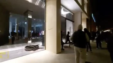 El muchacho, protagonista de esta desopilante secuencia, intentaba sustraer el contenido de uno de los comercios en medio de los incidentes. Al intentar irse corriendo, chocó contra una vidriera.