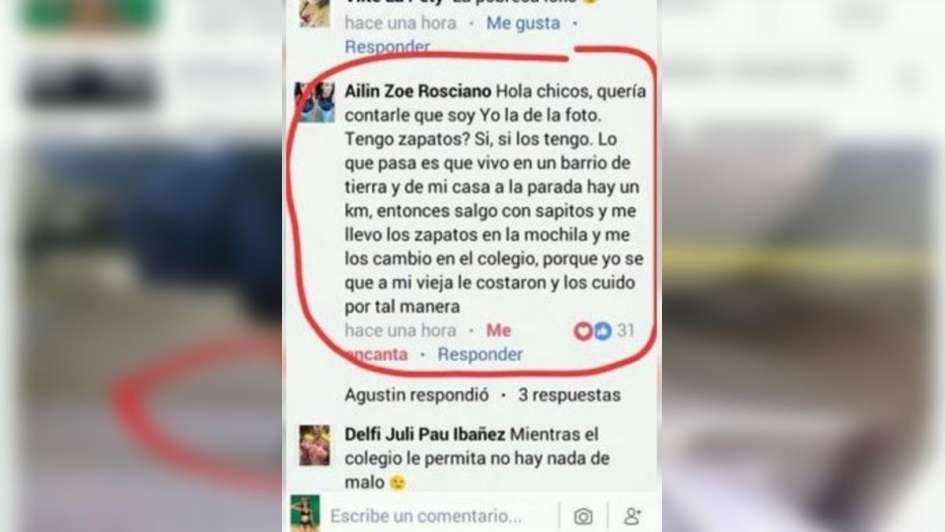 En el mismo comentario que hizo en la publicación del adolescente que viralizó su imagen, Ailín contó que a su mamá “le costaron” los zapatos y que, por esa razón, “los cuida de tal manera”.