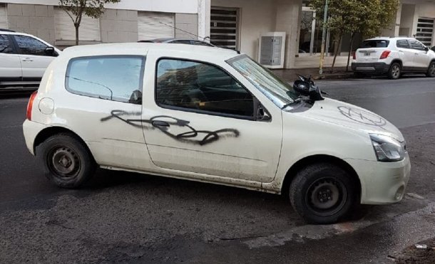 Cansado y en medio de un brote de ira, un vecino marplatense que no fue identificado le pintó con aerosol el ícono de “prohibido estacionar” a un Renault Clio que tapaba la bajada de un garaje.