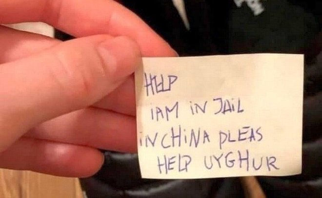 “Ayuda, estoy en una cárcel en China, por favor, ayuda a los uigures”, manifestaba el papel encontrado por Arslan Gibadullin, de San Petersburgo, tras la compra por internet.