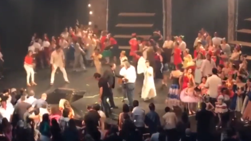 El boquete que se originó sobre las tablas engulló a un grupo de bailarines y rápidamente se desalojó a los espectadores del teatro para poder atender los artistas que habían caído en el agujero generado por la apertura del escenario.