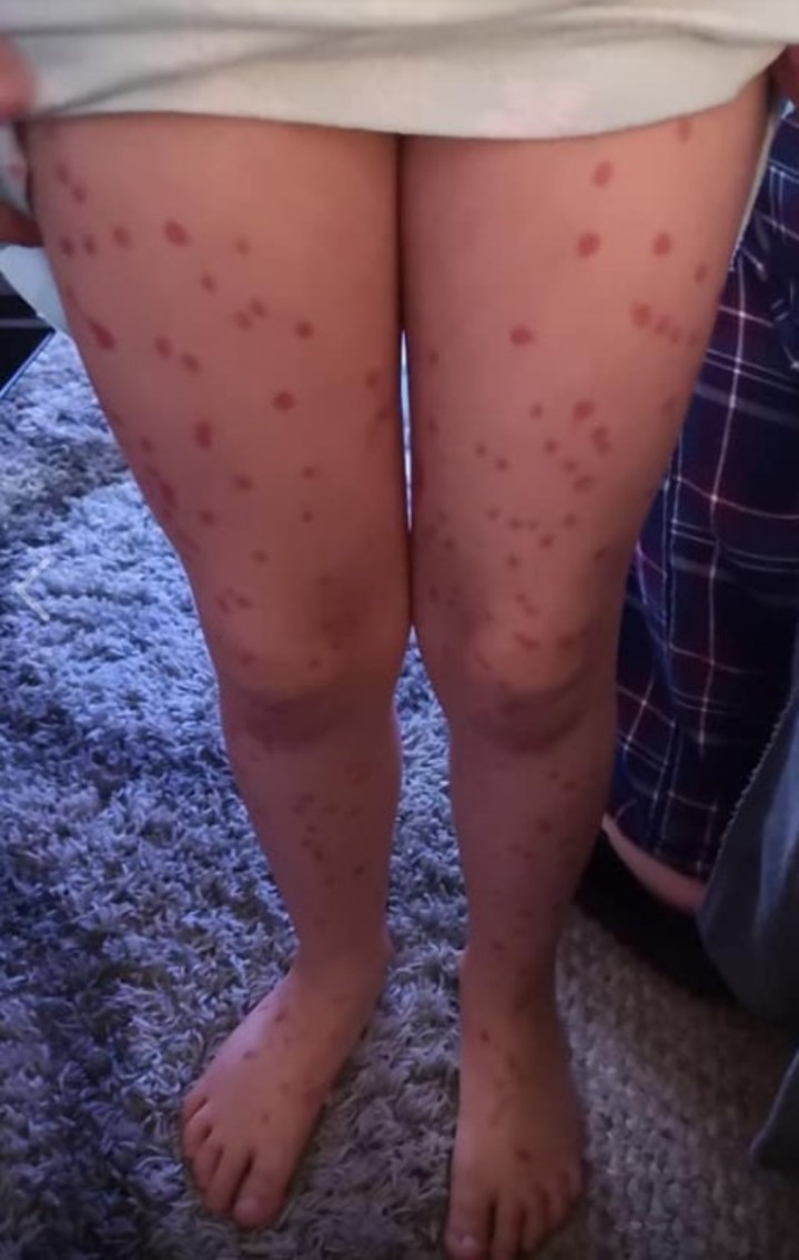 "Tuvimos que enviarla con una carta para decir que las marcas no eran contagiosas o reales y que no podíamos borrarlas. Usamos gel de baño, jabón, agua caliente, aceite de bebé, toallitas con alcohol. Creo que fue la laca para el cabello la que las eliminó después de cuatro días", explicó su mamá.