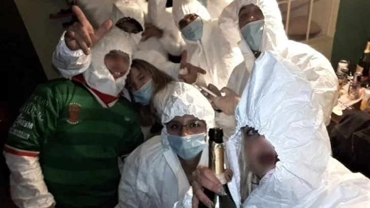 El diario de San Pedro La Opinión reveló imágenes de la fiesta clandestina en la que un grupo de jóvenes celebró un cumpleaños vestidos con mamelucos sanitarios.