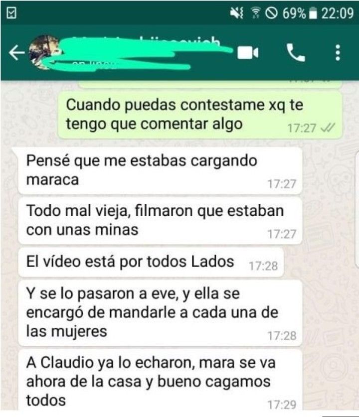 La primera mujer que se enteró le envió los videos a los que participaron de la fiesta y a sus respectivas esposas. "Anoche yo le envié el video a todos los chicos que tengo de contacto para que sepan que yo ya sabía que estaban haciendo", contó la mujer en un audio que también se viralizó.