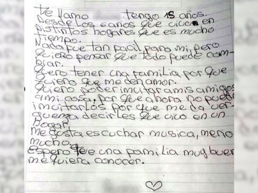 Se hizo viral la carta de una joven que suplica que la adopten