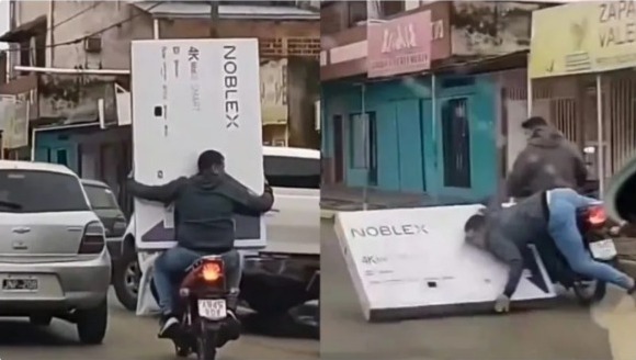 El valor del televisor ronda los 300 mil pesos argentinos. Y nadie sabe quiénes son los hombres que protagonizaron el hecho, ya que estos levantaron la caja, se acomodaron en la moto y siguieron su camino.