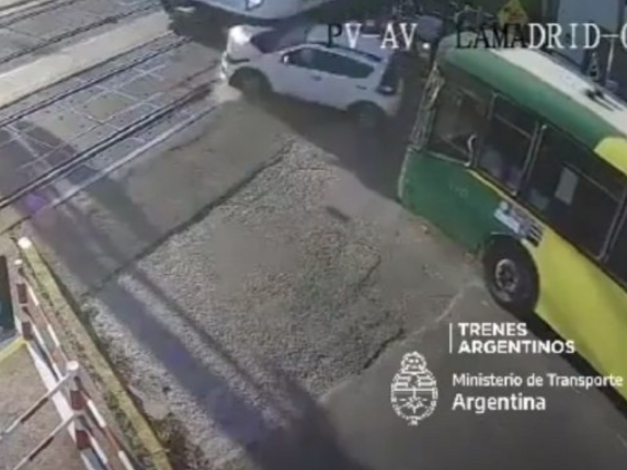 De esa manera, el tren impactó contra el frente derecho del automóvil, que finalmente quedó de costado en el asfalto.