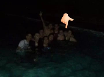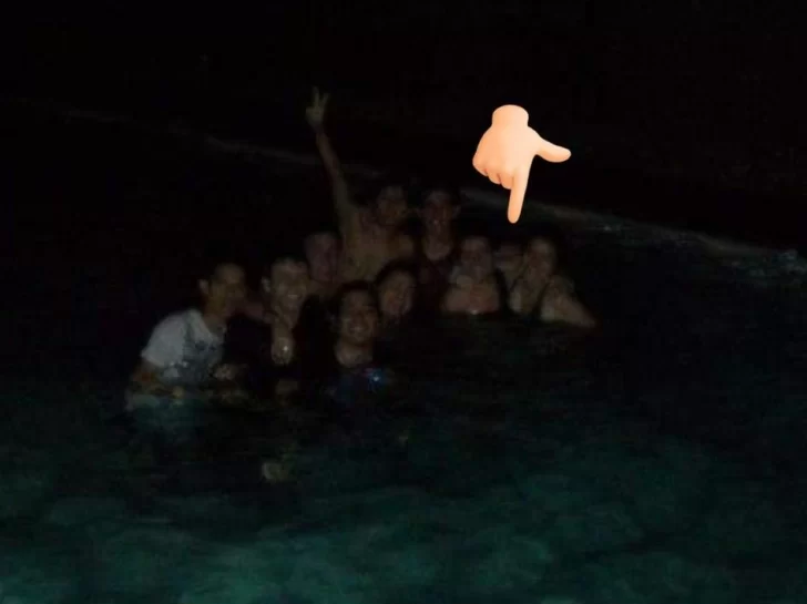 “Podría escribir un libro entero aquí… Una corta: hace mucho fuimos con unos amigos a una cabaña, nos metimos a la piscina en la noche, nos tomaron una foto y un intruso decidió posar con nosotros abrazando a 2 amigas. Perdón por la foto, pero la época no daba para más calidad”, fue el relato, con lujo de detalles, que ella llevó a cabo.
