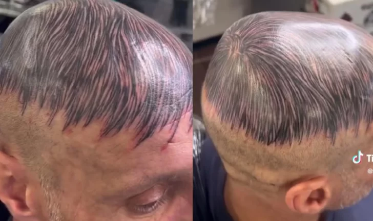De acuerdo con la cuenta dedicada a compartir video virales, el hombre se tatuó la cabeza para “olvidarse del trasplante de cabello”. Cientos de internautas comentaron la particular decisión del hombre, por lo que dejaron sus reacciones en el post que ya cuenta con más de 272 mil “Me gusta”.