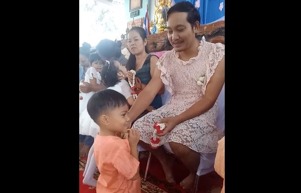 Un joven padre soltero de Tailandia se convirtió en viral luego de acompañar a sus hijos a una actividad en el colegio por el Día de la Madre vestido como mujer.
