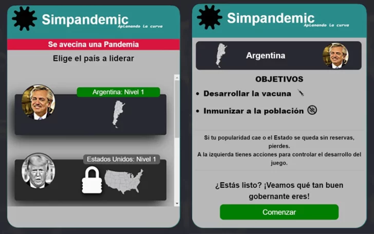 Se viralizó en las redes sociales un juego online en el cual el jugador toma el lugar del presidente Fernández y debe encontrar la vacuna contra el virus que azota al mundo e inmunizar a la población. El desafío es hacer equilibrio entre mantener el sistema sanitario sin colapsar y a la vez tratar de administrar de la mejor manera posible los recursos del Estado.