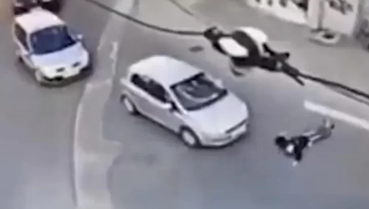Luego de presenciar el insólito episodio, los ocupantes del auto gris se bajaron del mismo para ver si necesitaba ayuda y otras personas de un auto negro también hicieron lo propio.