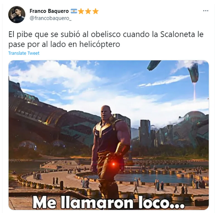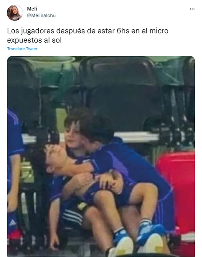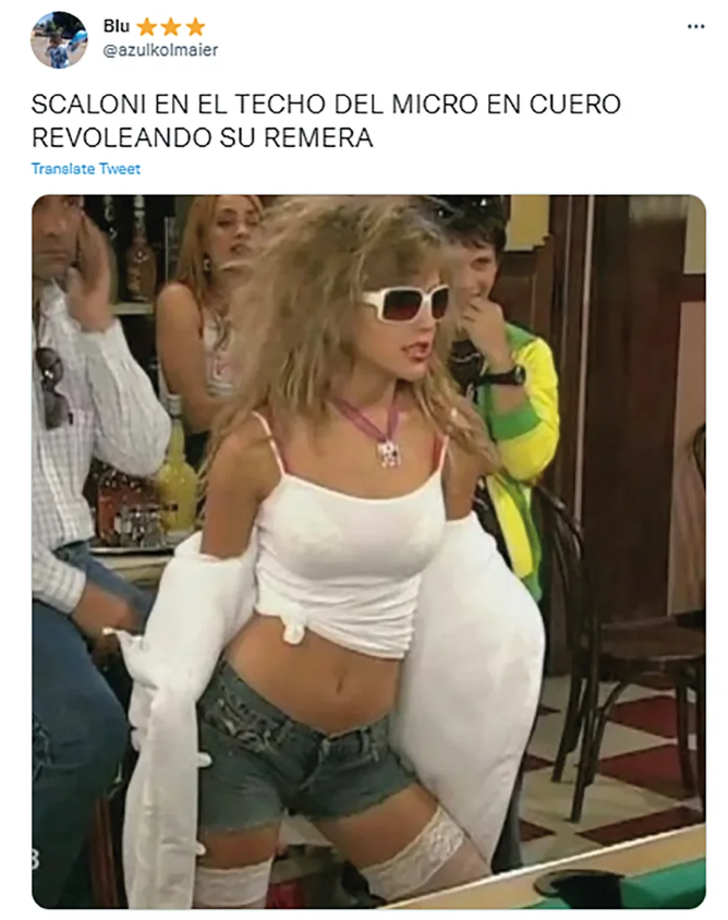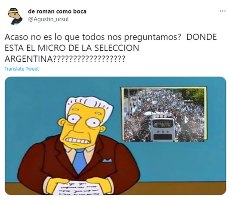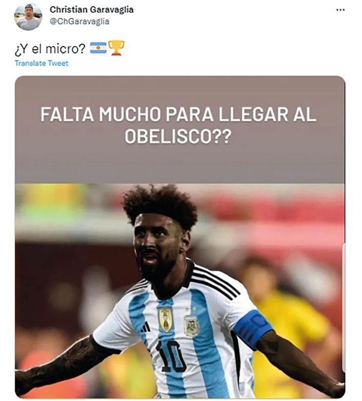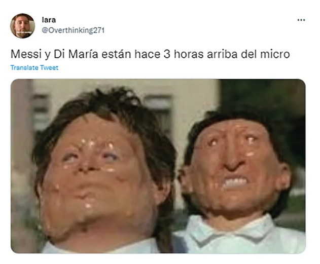 Este martes los futbolistas de la selección argentina amanecieron en el predio de la AFA en Ezeiza y cerca de las 12 del mediodía se subieron a un micro descapotable que tenía planeado recorrer la Ciudad de Buenos Aires para celebrar junto al pueblo. Pero, el caos fue total debido a una mala organización y el desborde provocado por los 5 millones de hinchas que colapsaron las autopistas y el centro porteño. Ante esto, en los usuarios en las redes sociales reaccionaron con memes.