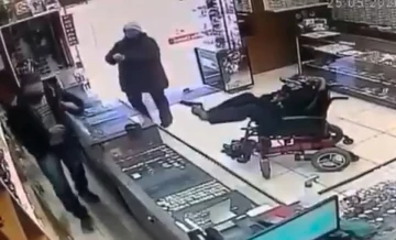 En las imágenes se puede ver cómo el sujeto muestra cierta destreza apuntando el arma con sus pies mientras dirige sus movimientos con la ayuda del silla de ruedas donde se desplaza.