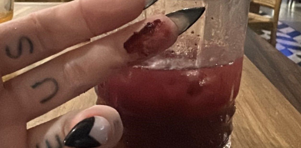 Inmediatamente compartió otra historia, en esta se podía ver el mismo vaso de antes con la supuesta sangre dentro y un dedo de Sofía manchado con el mismo líquido.