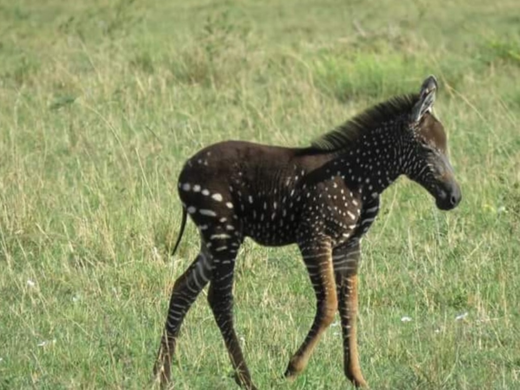 Una cebra bebé con una curiosa mutación genética ha sido hallada en la reserva Masai Mara de Kenia y por su aspecto ha llamado la atención de todo el mundo: en lugar de las características rayas de su especie, tiene lunares.