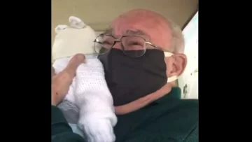 En un momento la nieta tuvo que salir a ponerle las vacunas a su bebé y no soportó la distancia. Fue a ver a su abuelo y le presentó a su bisnieto.