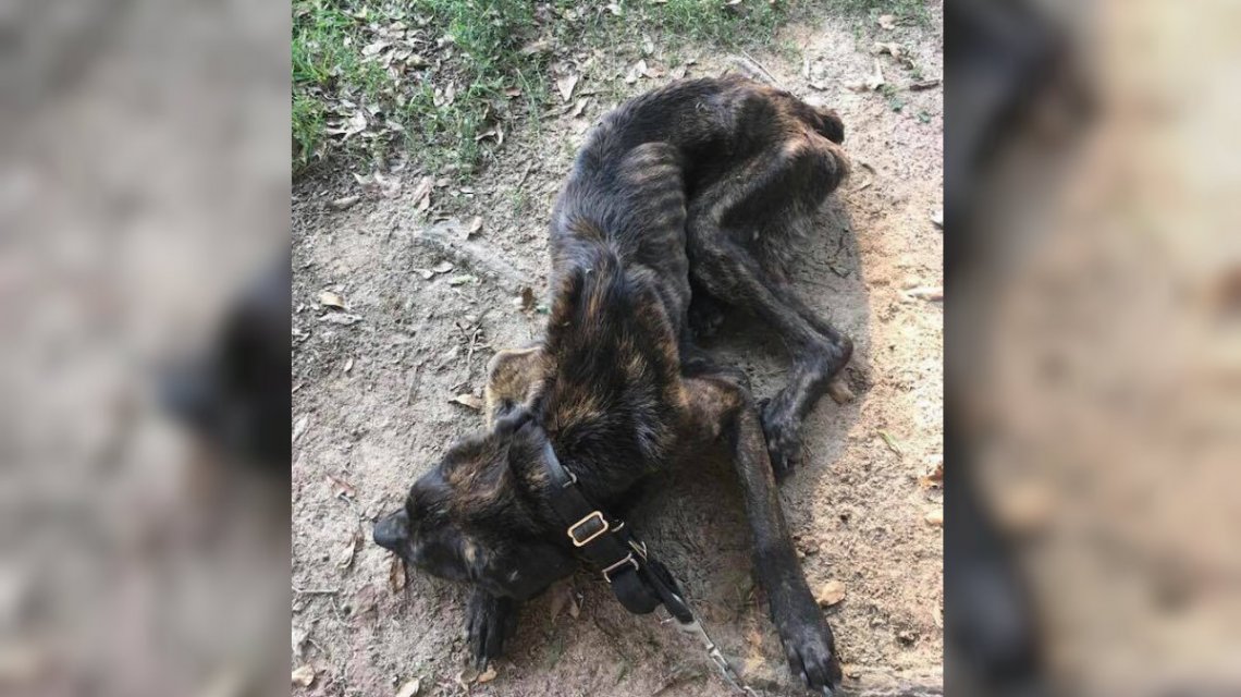 El perro, que es una mezcla de mastín de 16 meses, fue rescatado de la casa de Laurens, Carolina del Sur, donde James lo tenía sin agua ni comida, cubierto de gusanos y parásitos.
