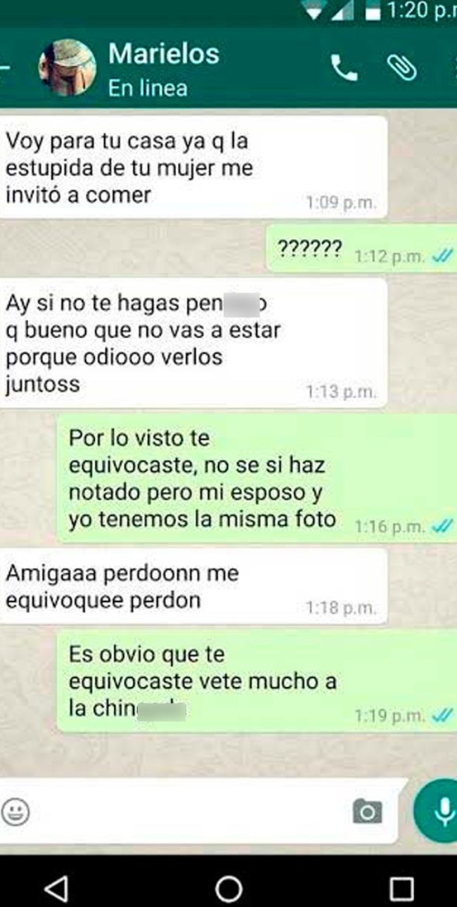 Cabe resaltar que la fémina tenía un romance a escondidas, que quedó al descubierto pues confundió la foto de perfil que los esposos compartían. Y con el mensaje compartido en WhatsApp, a la mujer le quedó claro que su ‘amiga’ la había traicionado.