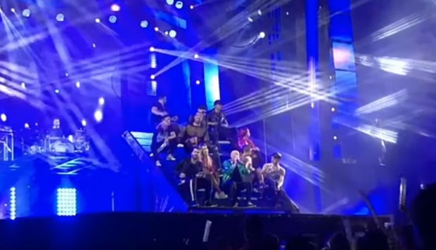 La formación se encontraba interpretando la canción de Beret llamada “Lo siento” en el momento en que la joven se cayó desde cinco metros de altura.