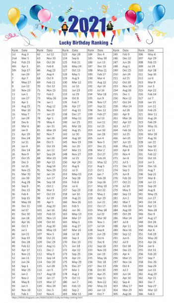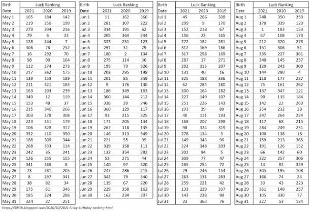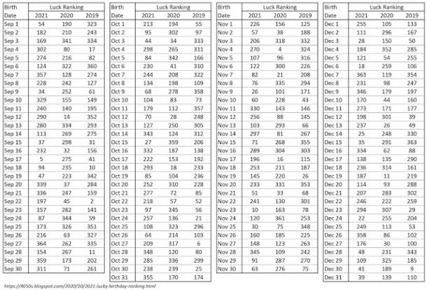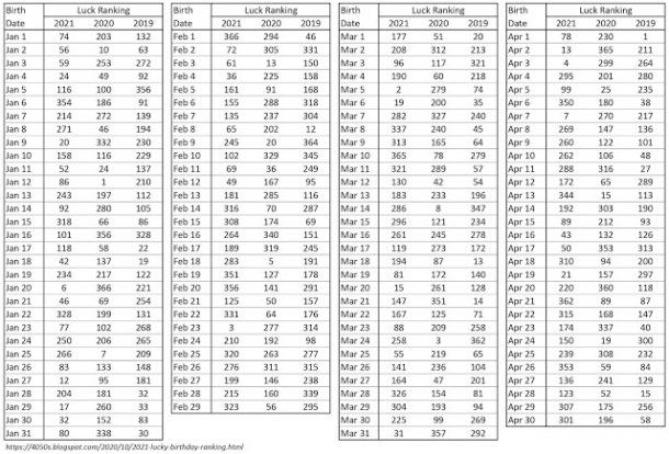 Según esta Tabla, los más afortunados serán los nacidos el día 3 de agosto, y los menos aquellos del 1 de febrero, que quedaron en el lugar 366, último de todos.