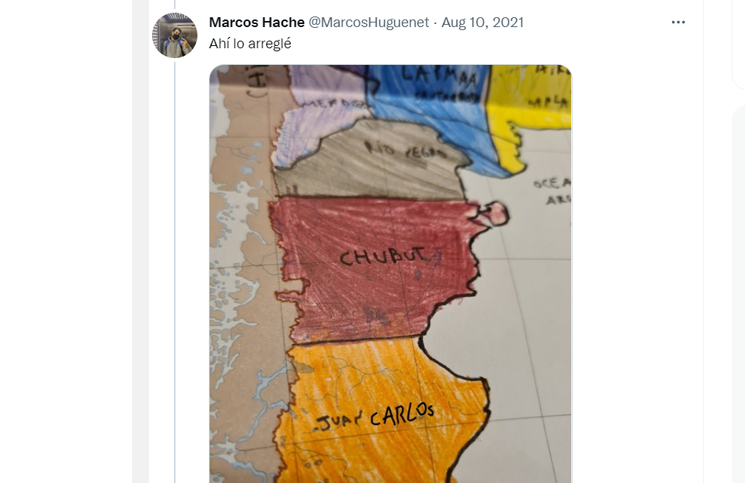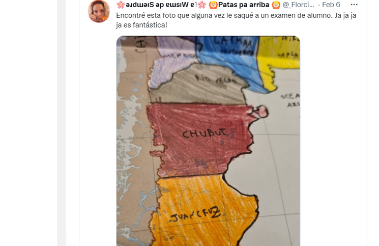 Son muchos los maestros que comparten en las redes el ingenio infantil a la hora de hacer una prueba. Y este alumno conmovió a las redes con su mapa de la Argentina. En el examen de geografía, los chicos tenían que entregar un mapa coloreado con el nombre de cada provincia, para lo que había que saber identificarlas por su forma y ubicación. Y la maestra no pudo evitar sonreírse cuando vio como un alumno llamaba a la provincia de Santa Cruz.
