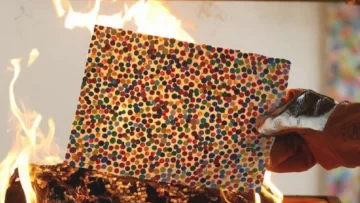 El artista británico Damien Hirst quemó 4.851 obras en una transmisión en vivo desde la Galería de Newsport Street, en Londres.