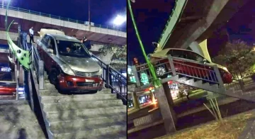 Una imagen proveniente de México recorrió el mundo por su rareza. La misma tiene como protagonista a un conductor ebrio y su vehículo que quedó atorado en la escalera de un puente peatonal.