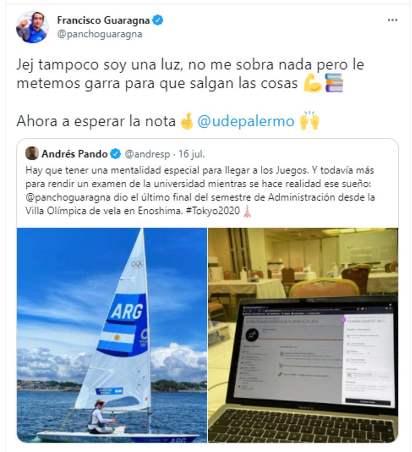 Luego de ponerle un poco de suspenso a la nota de la evaluación a través de sus redes sociales, el atleta aclaró: “Aprobé las dos materias que estaba cursando este cuatrimestre. Una me tocó rendir en Valencia, unos días antes de viajar a Japón”.