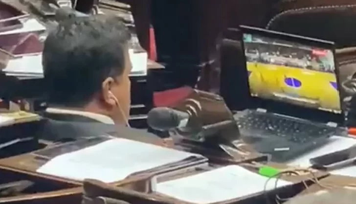 Mientras se lo ve mirando básquet, de fondo se escucha cómo continúa el debate. De hecho, en ese momento el diputado del Bloque Socialista por Santa Fe, Enrique Estévez, cuestionó el presupuesto y planteó: “Es un espectáculo triste ver cómo la bancada oficialista y la principal bancada opositora compiten para ver cuál de los presupuestos fue donde menos cerraron los números y que más ajustaron”.